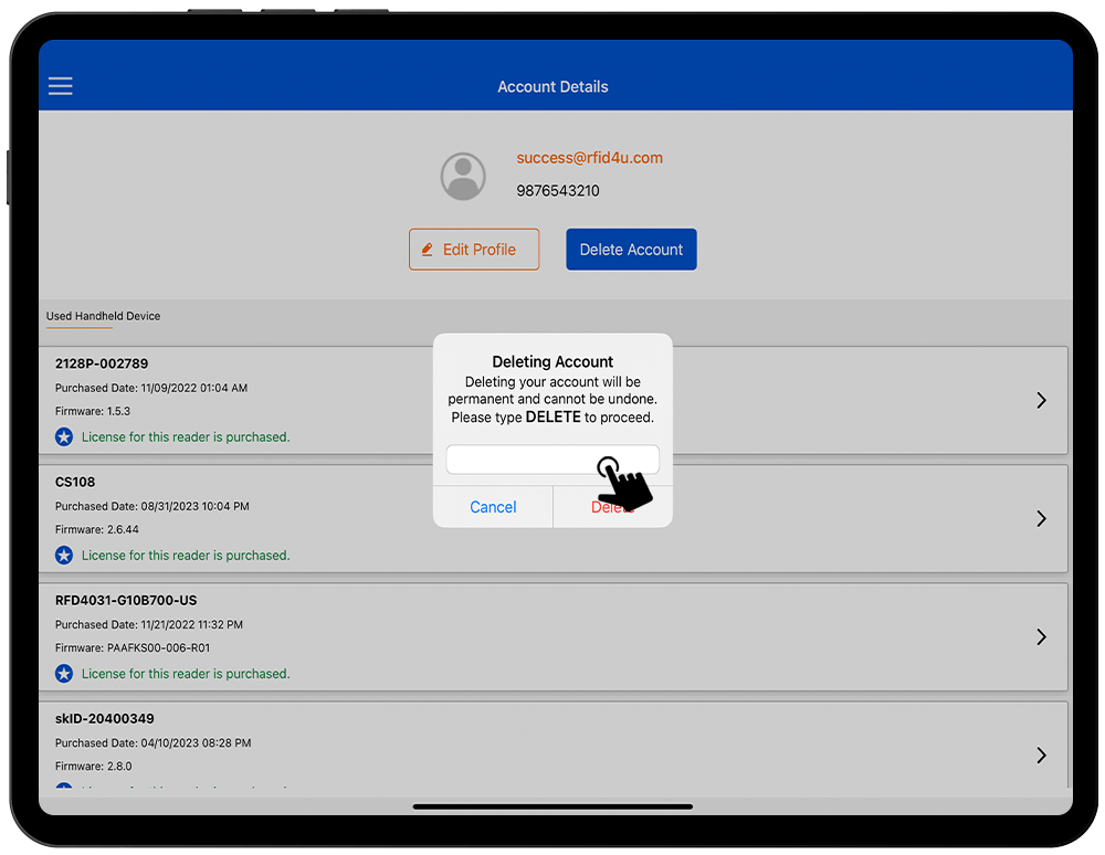 Once the verification process is complete, users will receive confirmation that their account deletion request has been initiated. RFID4U will then proceed to permanently remove the user's data from our systems.