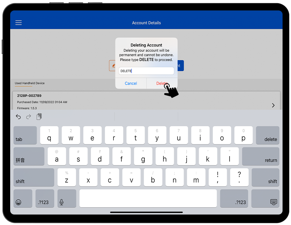 3. Click on the “Delete Account” tab ,and enter the word "DELETE" to confirm your decision.As shown in Fig 0.3.