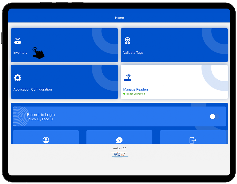 1. To read the RFID tags from RFID reader; Click on “Inventory” button option, from Home Page. As shown in Fig 1.0.