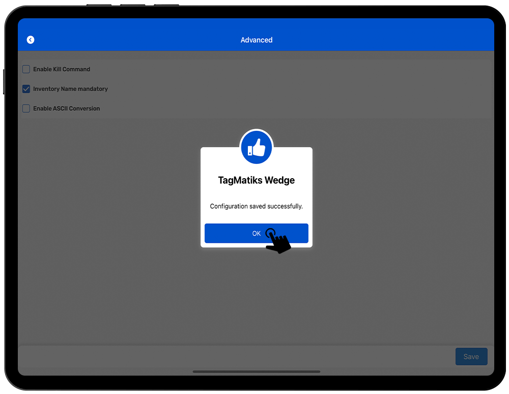 6. You can Tap on the Check Box to make the Inventory Name Mandatory as shown in the image below and tap on Save. As shown in Fig 1.3.