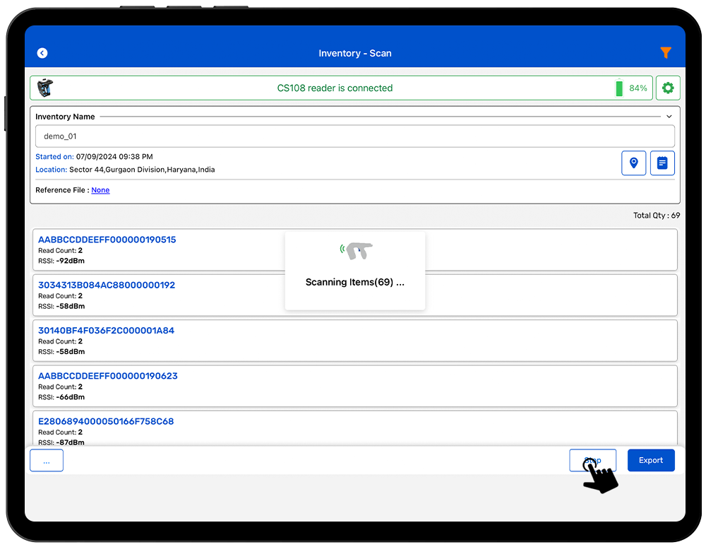 10. Once you Press “Stop” button (on the right bottom of the application); reader will stop reading the tags.