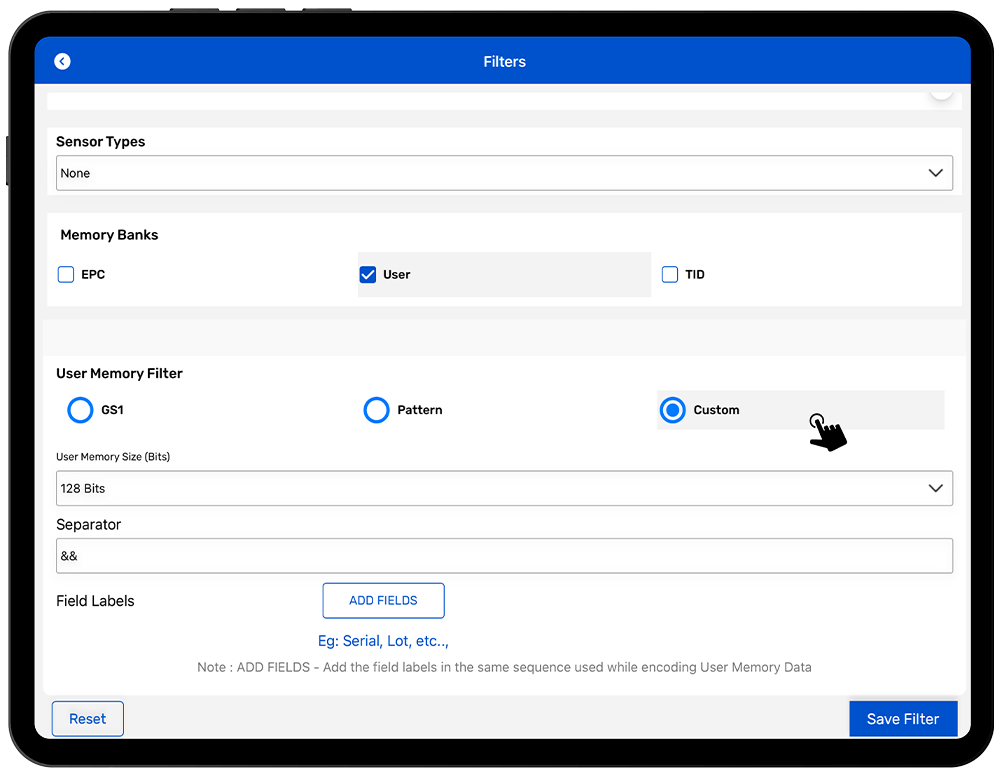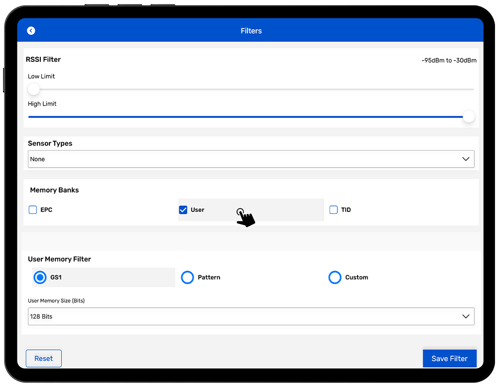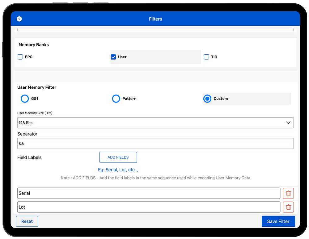• User Memory Filter using GS1 Fields