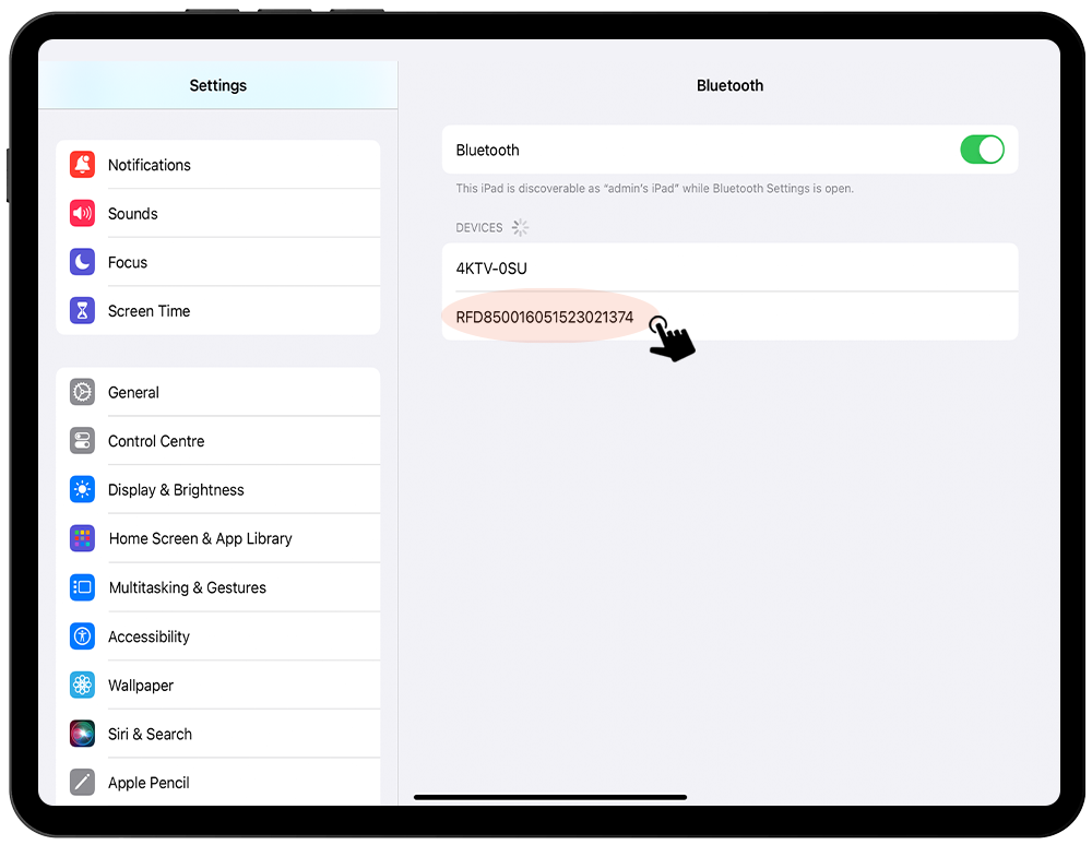 Go to the Bluetooth settings page, select the “RFD8500” Device.