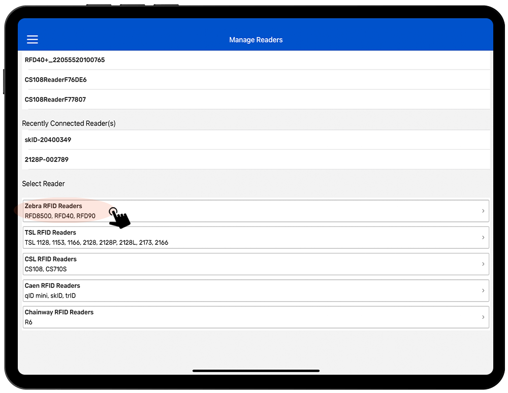 6. Select “ZEBRA RFID Readers” (highlighted in Black).