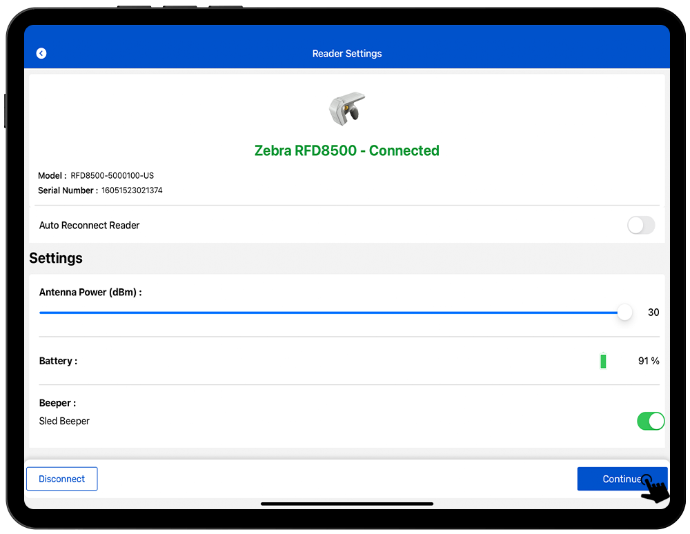 10. The reader’s name will be “RFD8500XXXXXXXXXXXXXX”; where “XXXXXXXXXXXXXX” is the 14 digit value of the device's serial number.