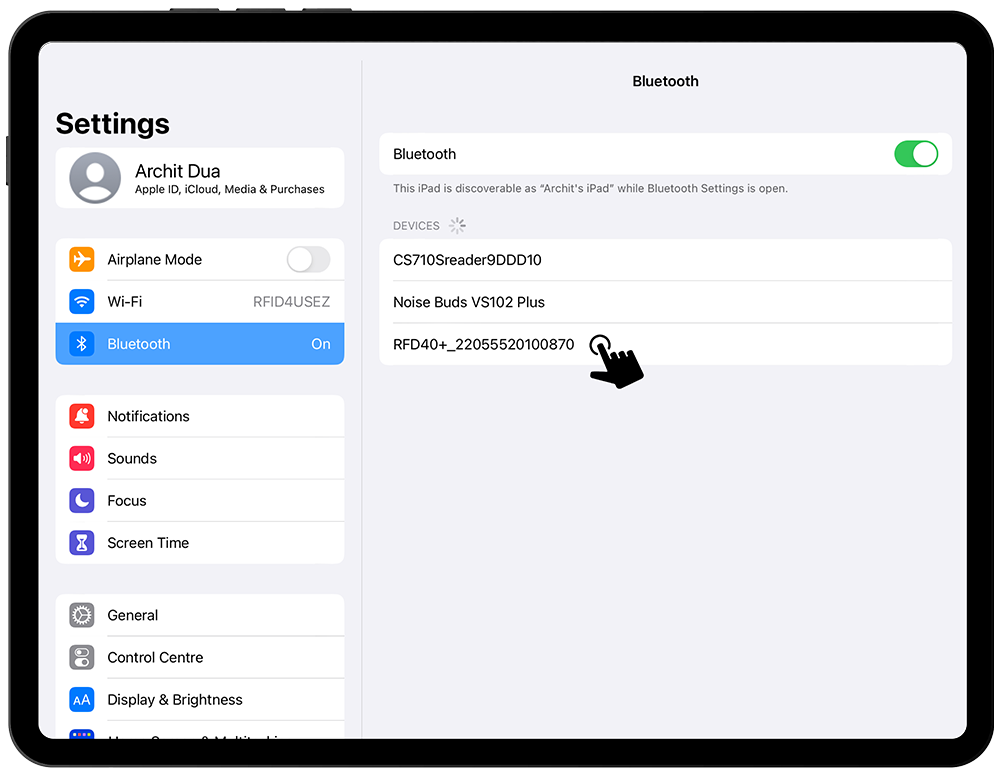 • Turn on the Bluetooth of the device and select the RFD40+_22055520100870 from the available device list as shown in the below image. As shown in Fig 0.4.