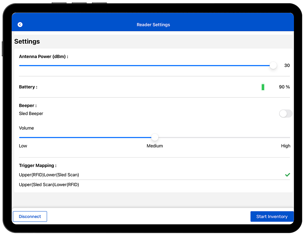 NOTE: Toggle the Auto Reconnect option to let the application automatically connect to the reader.