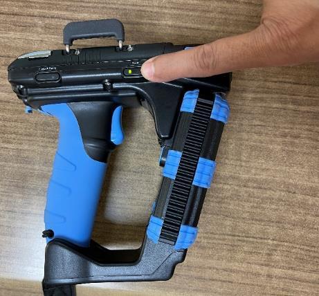 11. Simultaneously the “RFID” LED light up solid YELLOW & “Barcode” LED light up solid BLUE.