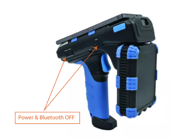 1. To switch off when the reader is on, press the Main Power button continuously for 3 seconds only.
