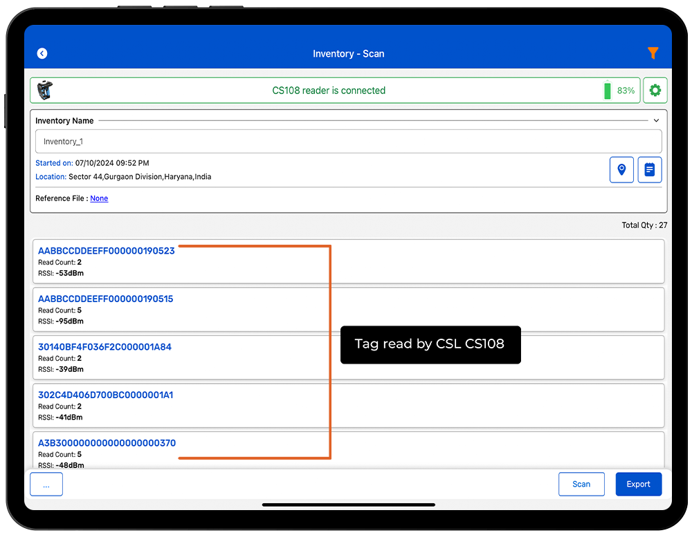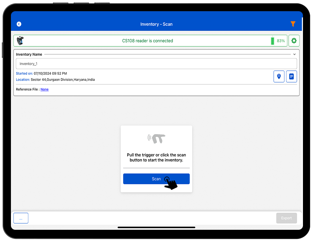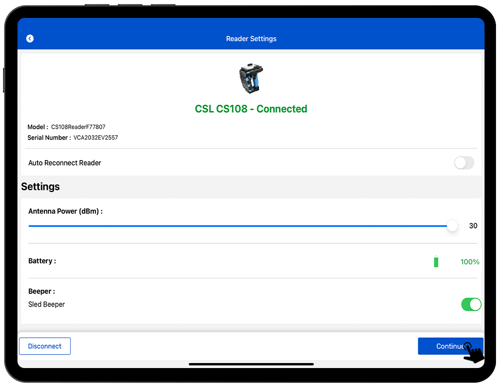 NOTE: Make sure the IOS Bluetooth must be on and near to the CS108 reader.