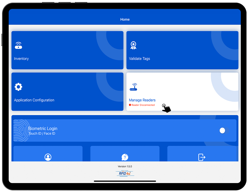 1. Click on the “Manage Reader” button - from the home page of the application.