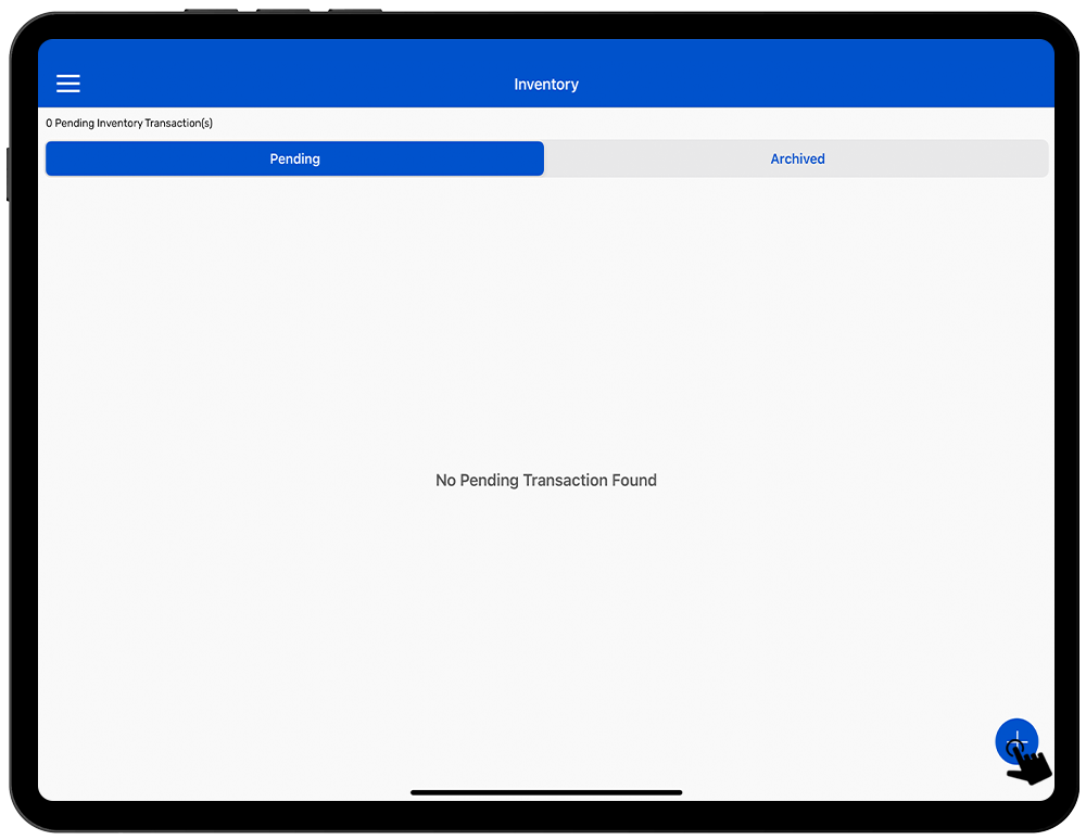 3. Create a new Inventory transaction, by clicking on the “+” button on the right bottom of the application. As shown in Fig 1.3.